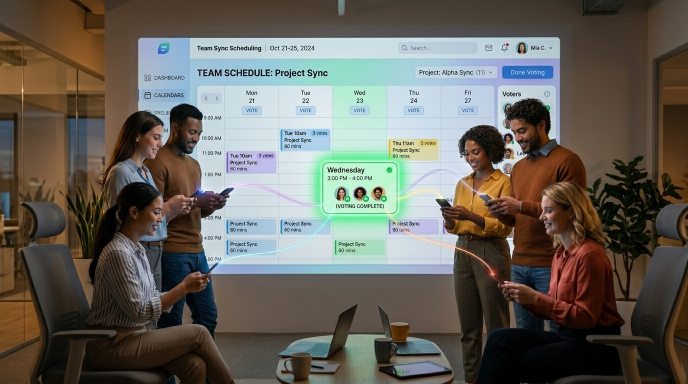 We handle the coordination work for you through our voting system. Everyone participates, selects their preferences, and we find a time that works for everyone — no more endless ping-pong emails.